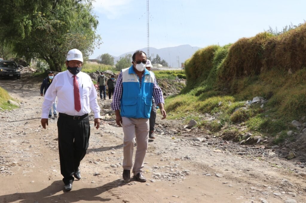 El alcalde Jaime Chávez Flores junto a su par Benigno Cornejo Valencia, acompañados por sus equipos técnicos de Obras Públicas y Desarrollo Urbano y Unidad Formuladora y Proyectos, realizaron una visita de inspección para conocer las alternativas del trazo de la vía y los terrenos que comprenderá la obra.
