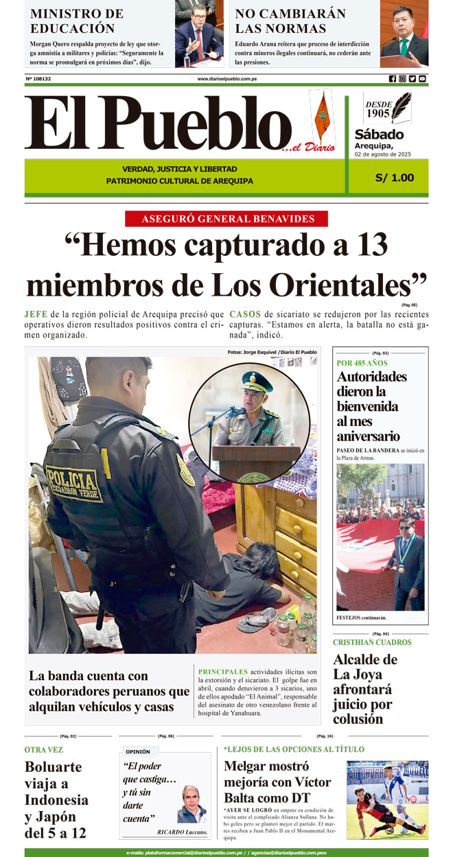Cabe precisar que por las recientes disposiciones legales y la curva epidemiológica, la comuna provincial anunció la suspensión del Corso de la Amistad. No obstante, anunciaron que, en su lugar, el 15 de agosto realizarán una actividad en la plaza de Armas resaltando la esencia arequipeña.