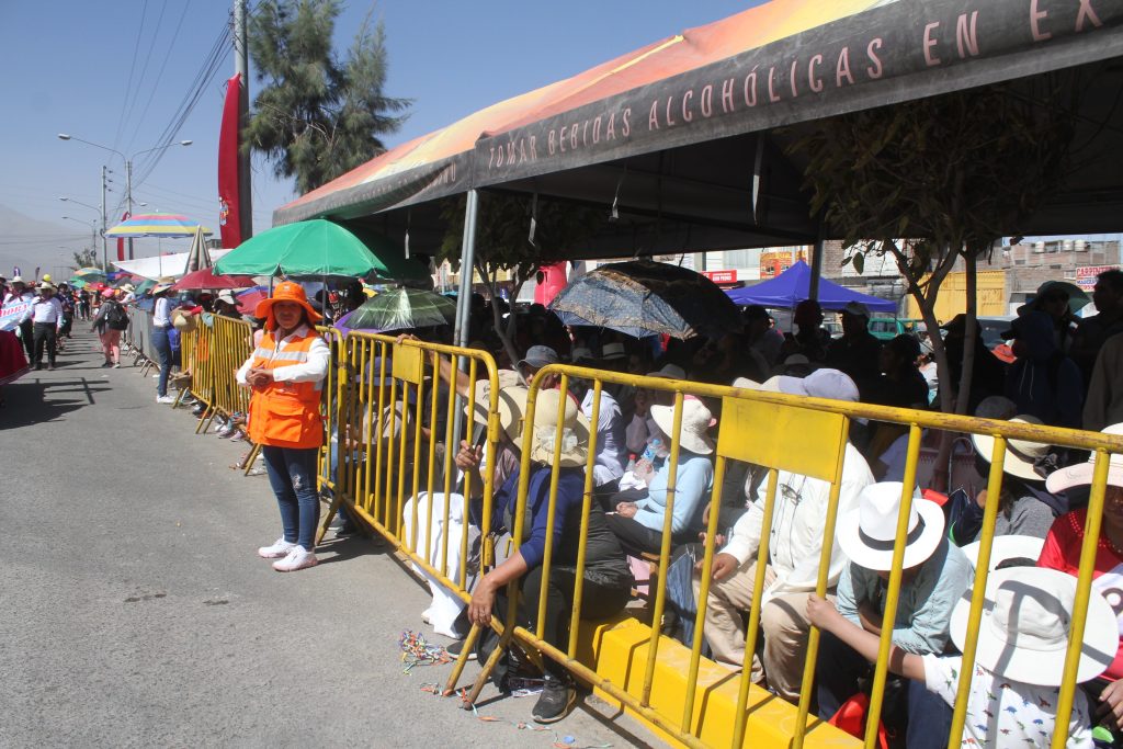 Pese a que se anunció a las 10:00, el primer agrupamiento llegó minutos antes de las 11:00 horas al estrado. En el lugar era visible la gran cantidad de asistentes y vendedores ambulantes, que ofrecían comida y bebidas. Estas últimas eran cargadas en baldes cubiertos de hielo para contrarrestar el calor que predominaba en la vía.