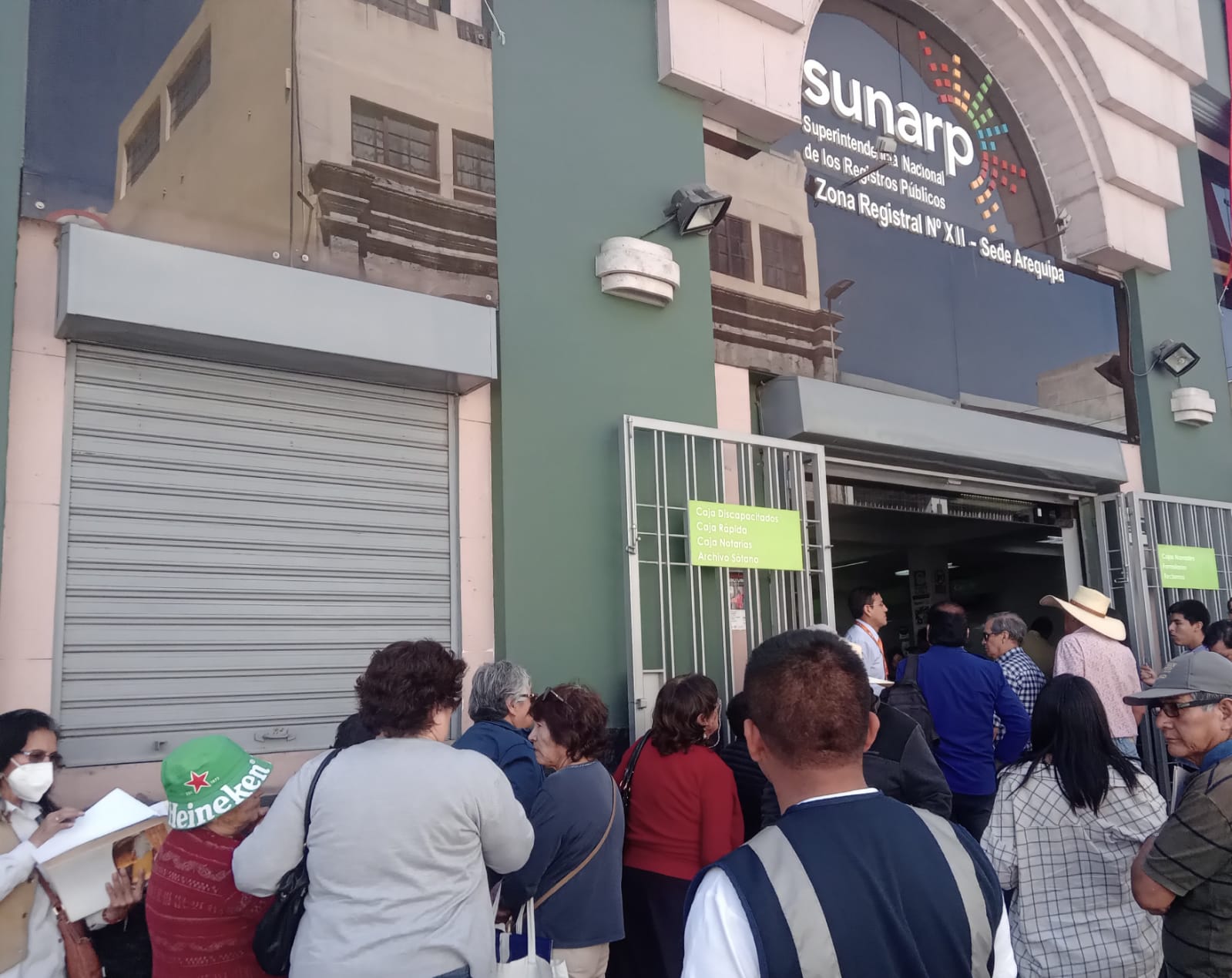 MÁS COLAS.- Los usuarios de Registros Públicos tiene que realizar largas colas fuera de la institución para realizar sus trámites. Ellos denuncian que el servicio es muy lento, al igual que muchas instituciones públicas.