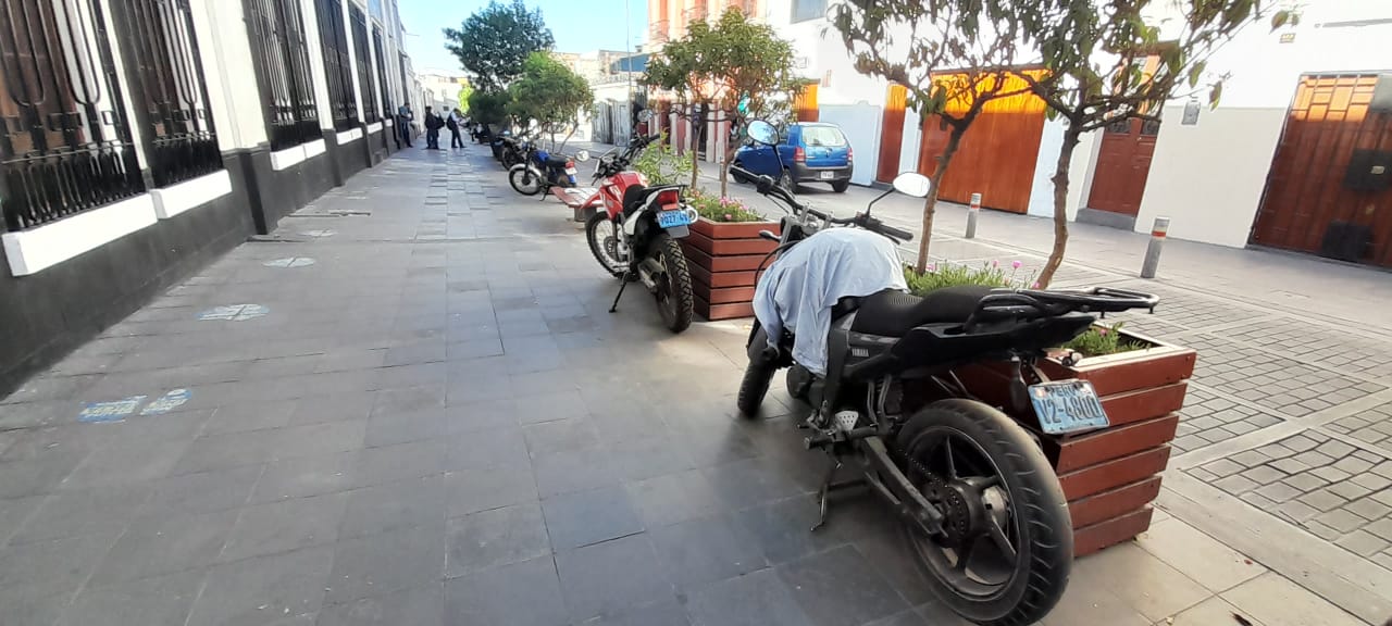 MOTOS. Se dice que los macetones fueron colocados para mejorar el aspecto de algunas calles del Centro Histórico, pero al parecer algunos hacen mal uso de estos y lo utilizan para estacionar sus motos dando un mal aspecto a las calles. Un claro ejemplo es la frentera de la empresa SEAL en donde han colocado una fila de motocicletas.