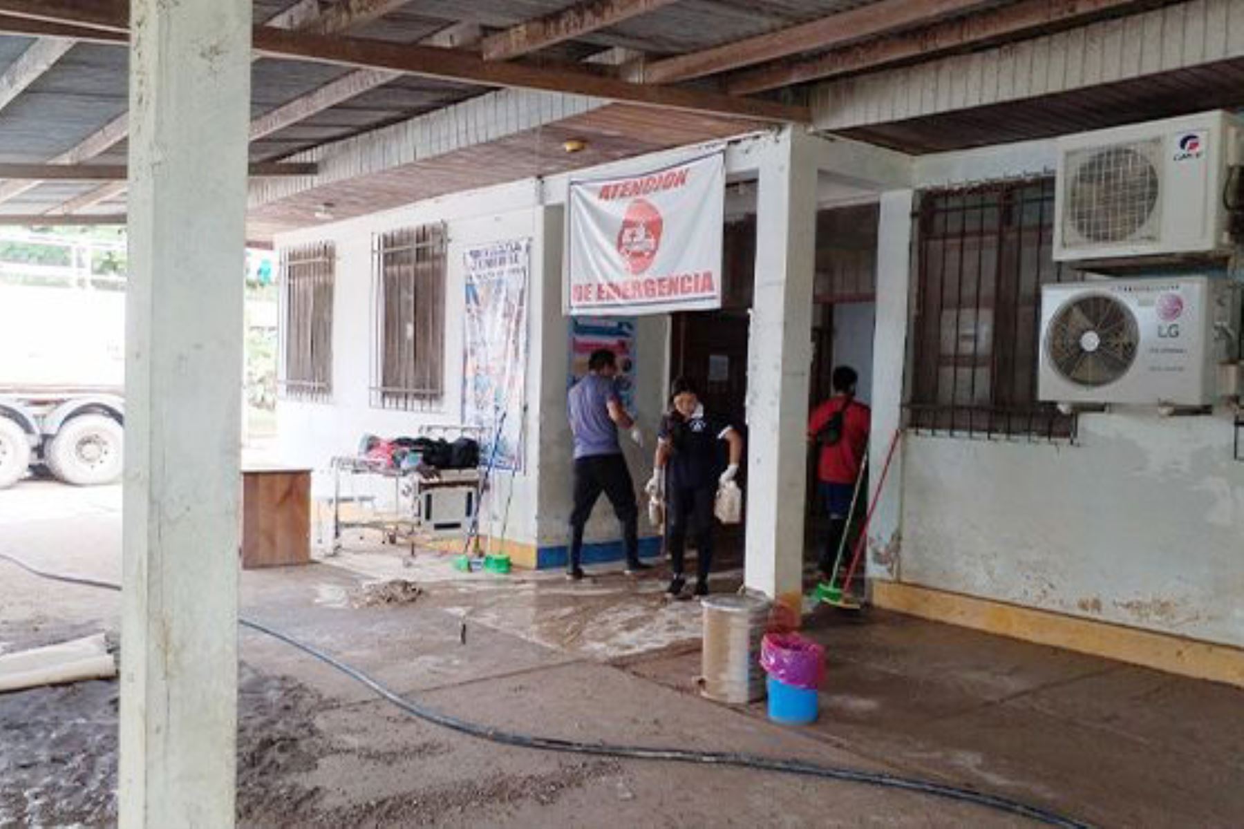 Los trabajadores del puesto de Salud Iñapari, en la región Madre de Dios, efectúan la limpieza y recuperación del establecimiento afectado por las lluvias torrenciales e inundaciones de los últimos días, informó el Ministerio de Salud (Minsa).