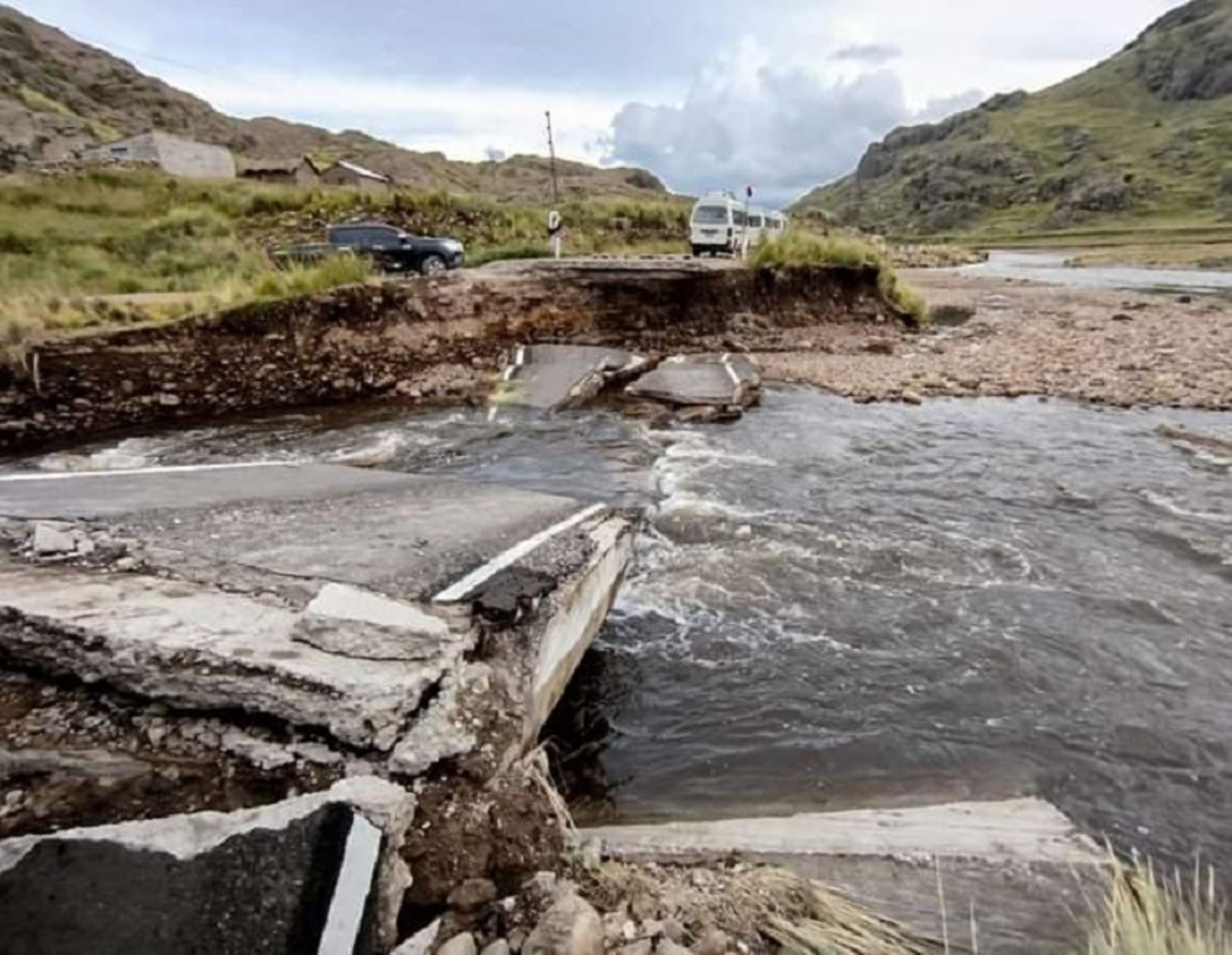 Uno de los incidentes más graves ocurrió en la provincia de Lampa, donde el desborde del río Cachinani provocó el derrumbe de un puente que conecta tres distritos: Palca, Vila Vila y Ocuviri. Este hecho tuvo lugar en la comunidad de Rivera Coyla, según informó la Municipalidad Provincial de Lampa.