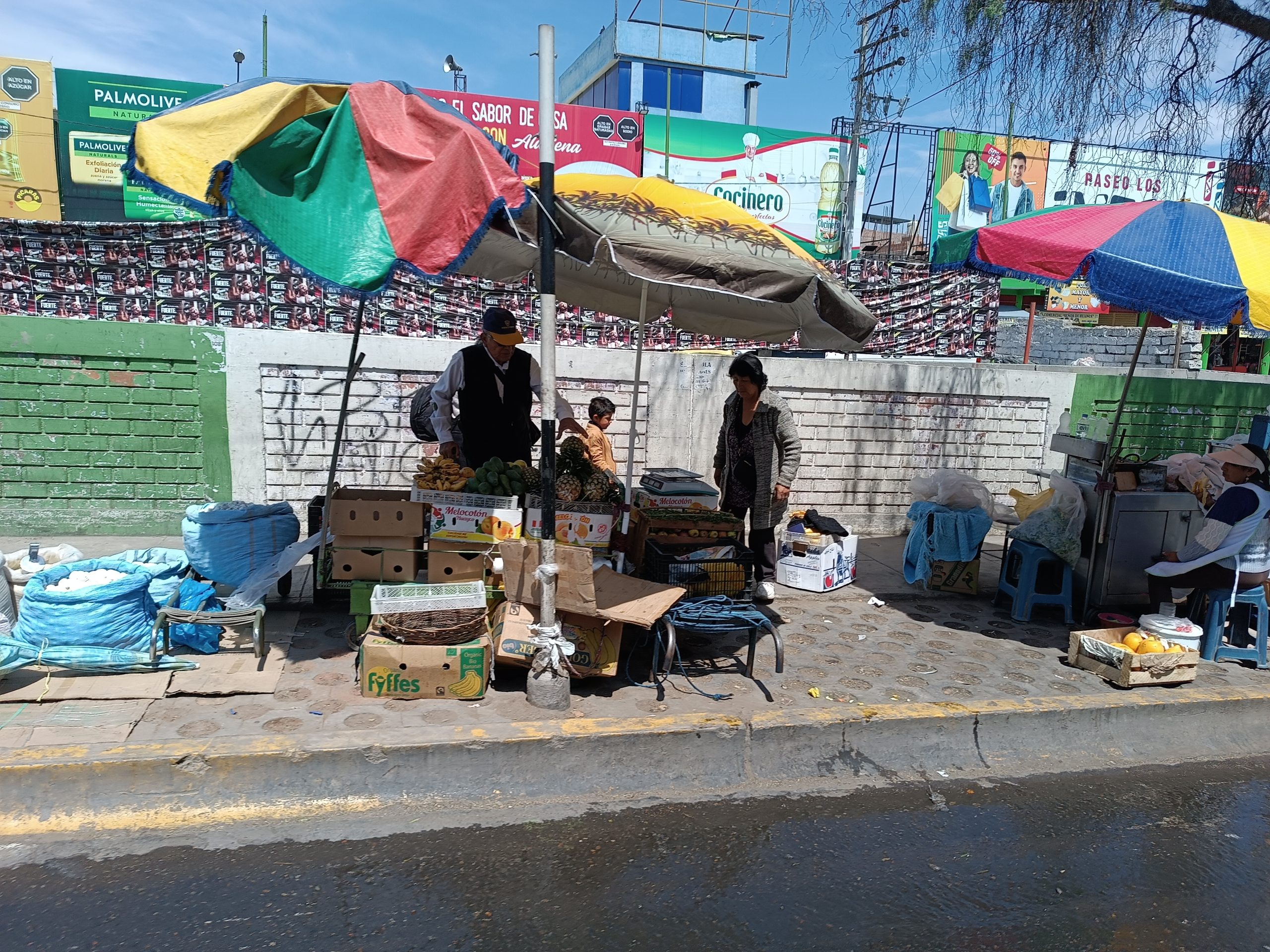 INSALUBRE. Los propietarios de los puestos de venta improvisados a lo largo de la Av. Los Incas conviven con las aguas empozadas que pueden perjudicar tanto al cliente como al vendedor.