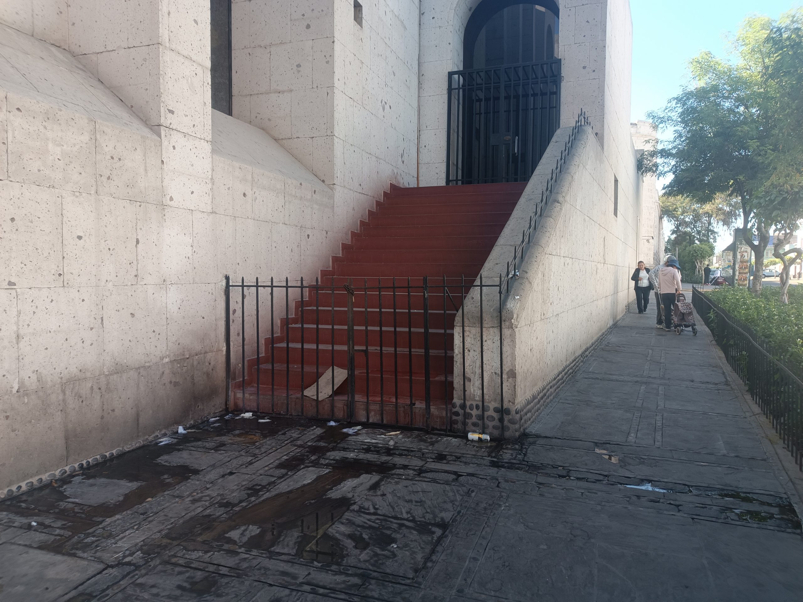 BAÑO PÚBLICO. Este espacio de la Corte Superior de Justicia de Arequipa es usado como urinario público por las personas que consumen bebidas alcohólicas en horas de la noche en la plaza España. Cada mañana el olor es insoportable.
