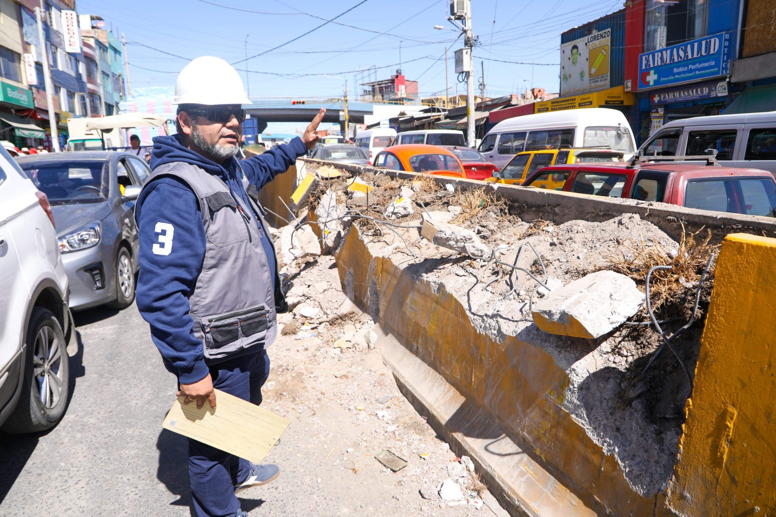 Ciudadanos inescrupulosos, con ayuda de maquinaria, destruyeron el muro del sardinel de la avenida Vidaurrázaga en el distrito de José Luis Bustamante y Rivero. El subgerente de Obras Públicas y Edificaciones Privadas de la Municipalidad Provincial de Arequipa (MPA), Carlos Santos, verificó los daños a la infraestructura.