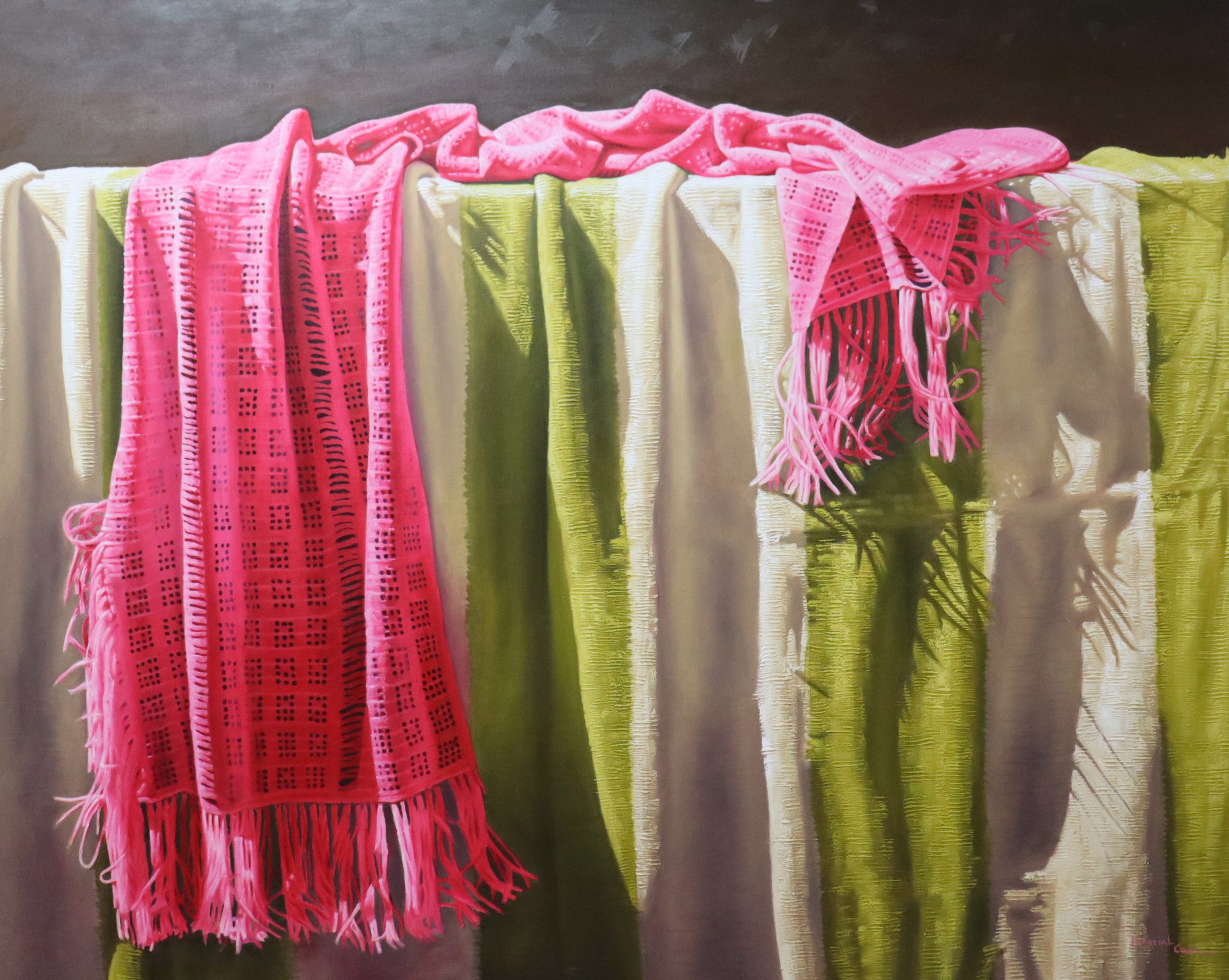 Metamorfosis del Bodegón, es una singular y atractiva muestra pictórica que nos ofrece un rico universo poblado de telas vistosas coronadas por diversos y coloridos frutos que se ofrecen a la vista del espectador.