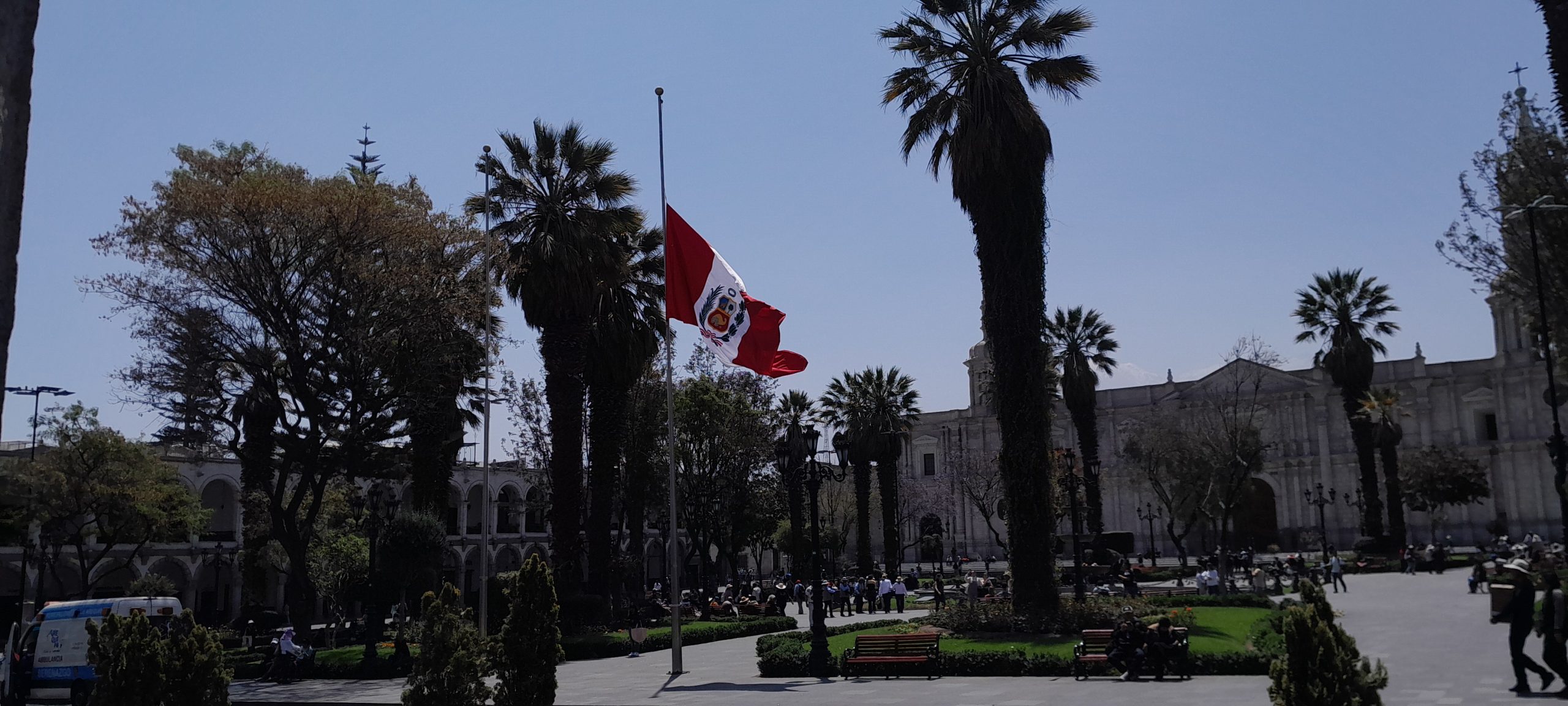 BANDERA.- La mañana de ayer, la población tuvo opiniones contrarias debido a que la Municipalidad Provincial de Arequipa habia izado la bandera a media asta por la muerte del ex presidente del Perú, Alberto Fujimori, quien falleció el día miércoles por la tarde.