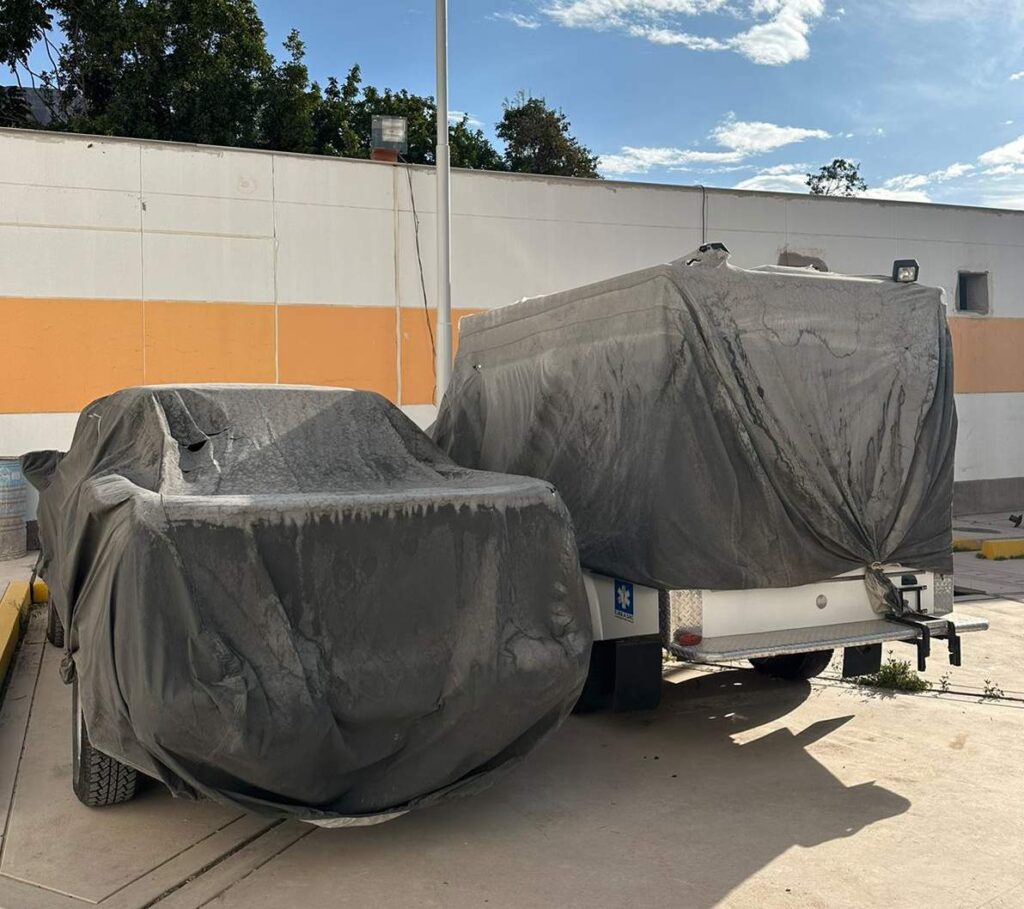 Empolvados, bajo el sol y la lluvia se deterioran equipos médicos que no han sido utilizados.