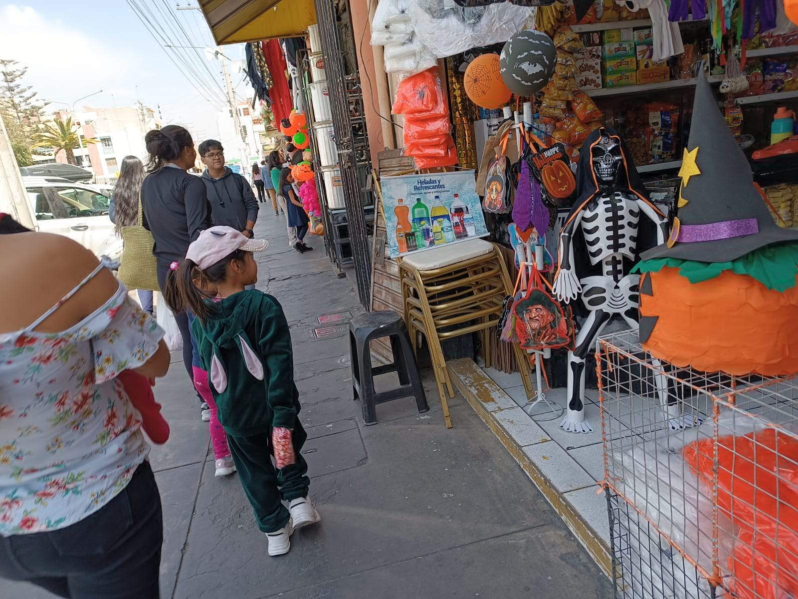 La fiesta de Halloween sigue creciendo en Arequipa, ayer por la noche centenares de padres de familia y jóvenes se apostaron en las calles Siglo XX y Deán Valdivia del centro de la ciudad para comprar o alquilar un disfraz o traje para celebrar el Día de la Brujas.