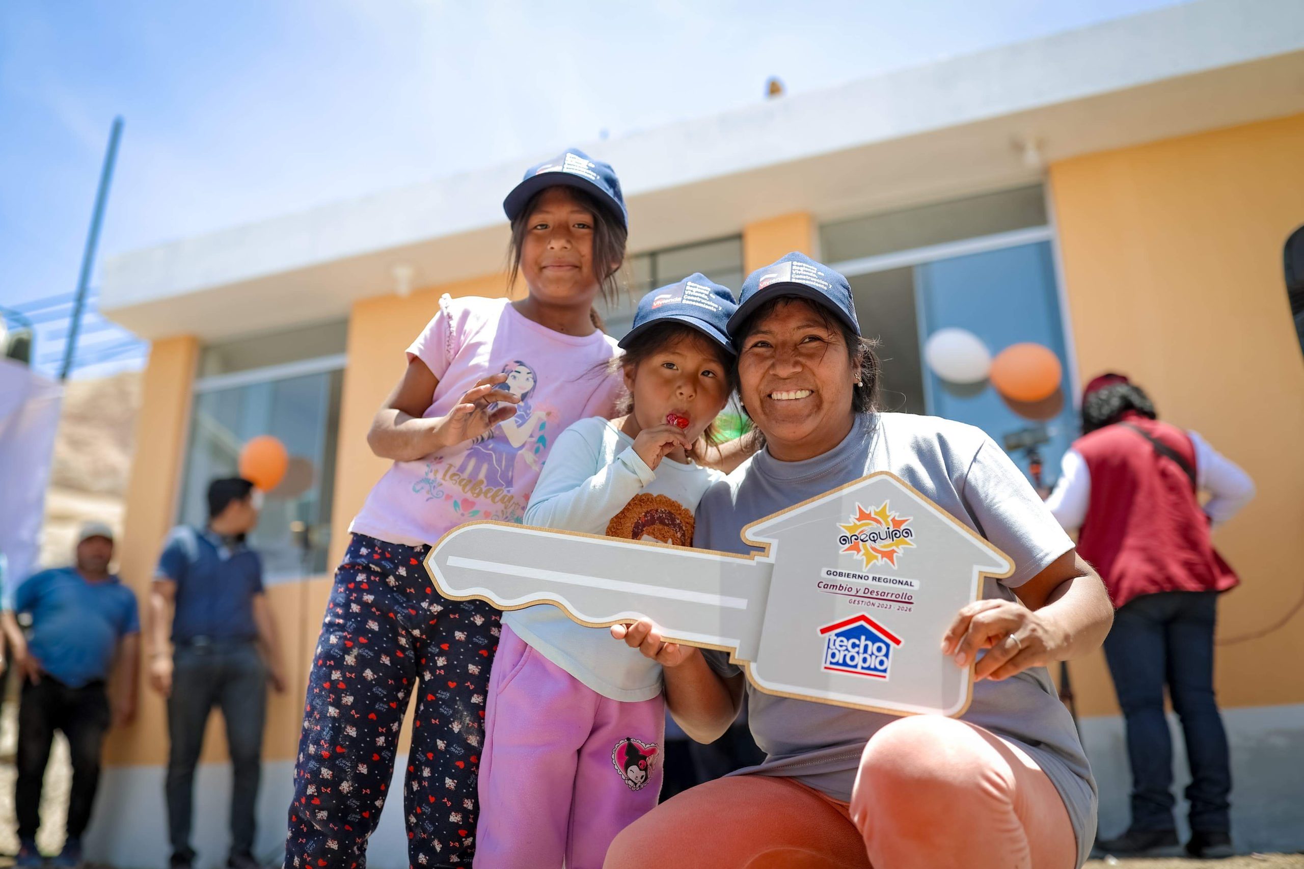 Ayer, 57 familias de los distritos de La Joya y Corire (Castilla) recibieron las llaves de viviendas que se han construido gracias al Bono Canon otorgado por el Gobierno Regional de Arequipa.