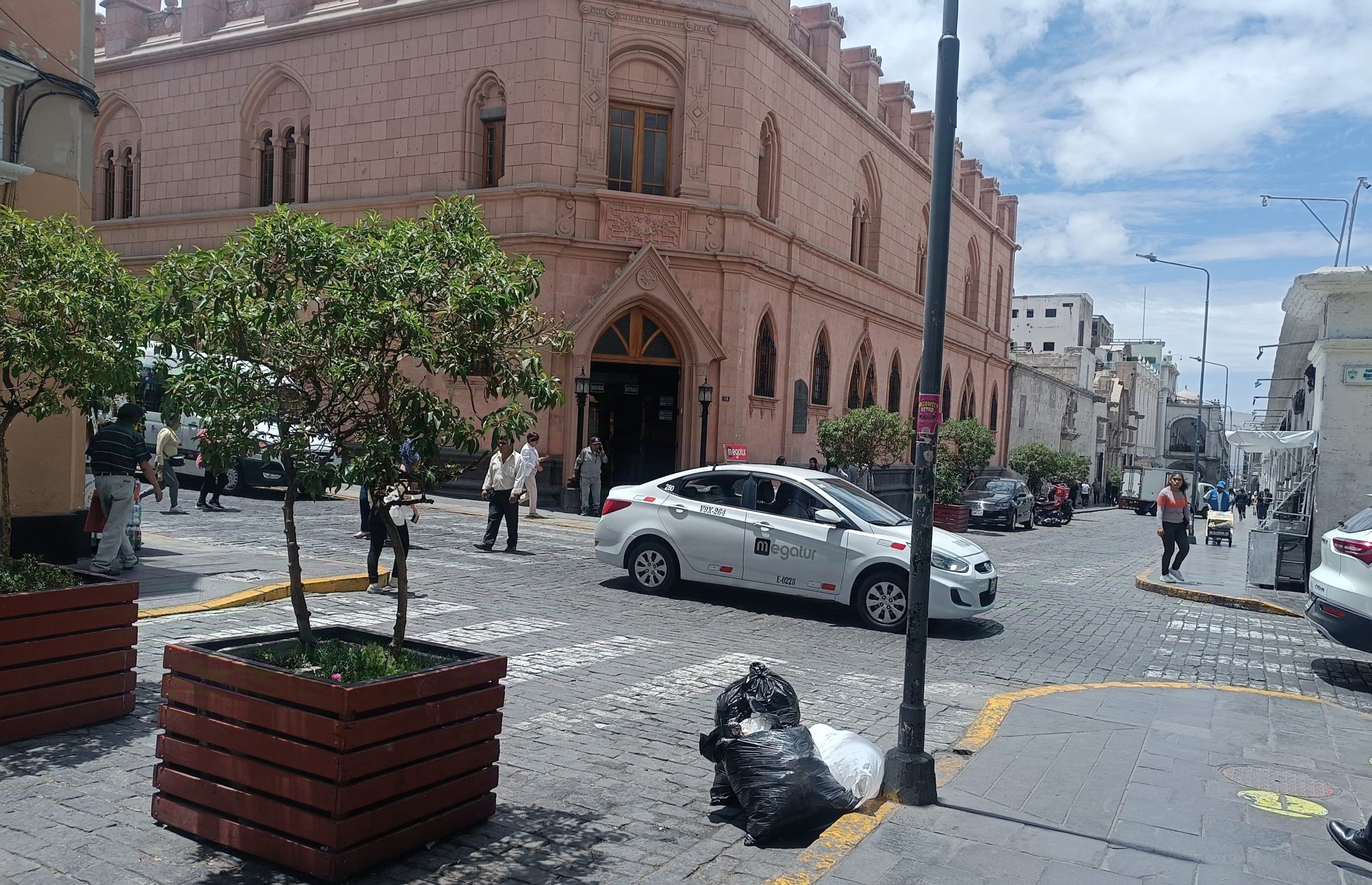 DESPERDICIOS. Las bolsas de basura en las esquinas del Centro Histórico de Arequipa afectan la imagen de esta emblemática zona. Sacar los desechos fuera de los horarios establecidos no solo genera focos de insalubridad, sino que también daña la estética de las calles transitadas por residentes y turistas.