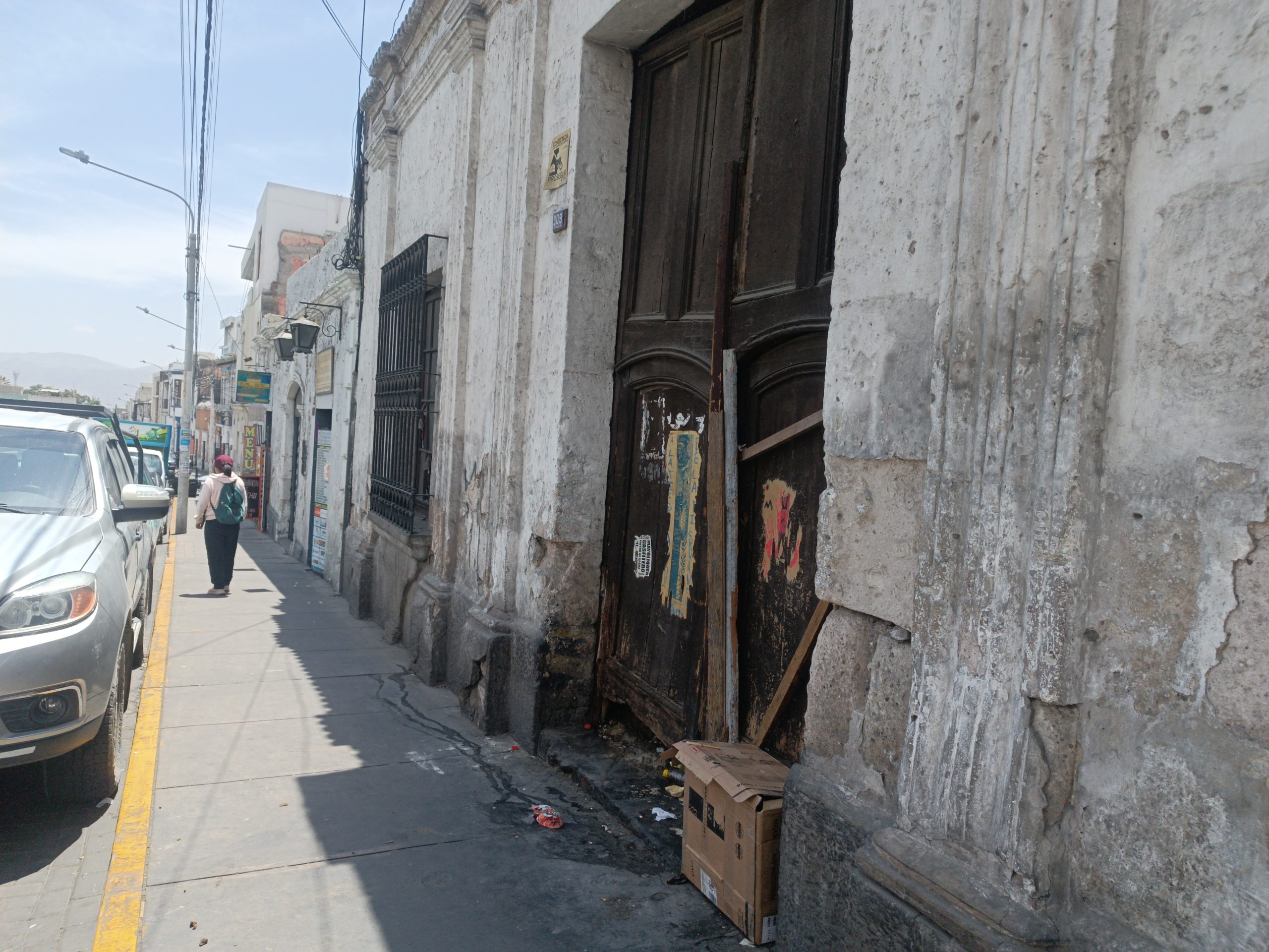 ABANDONO. La puerta del inmueble 309, de la calle Colón muestra un deterioro que no solo afecta la imagen del lugar, sino que también es el punto de acumulación de basura y usado como urinario. La falta de mantenimiento ha generado que el área sea utilizada por los transeúntes como improvisado basurero, contribuyendo a la degradación del entorno urbano.