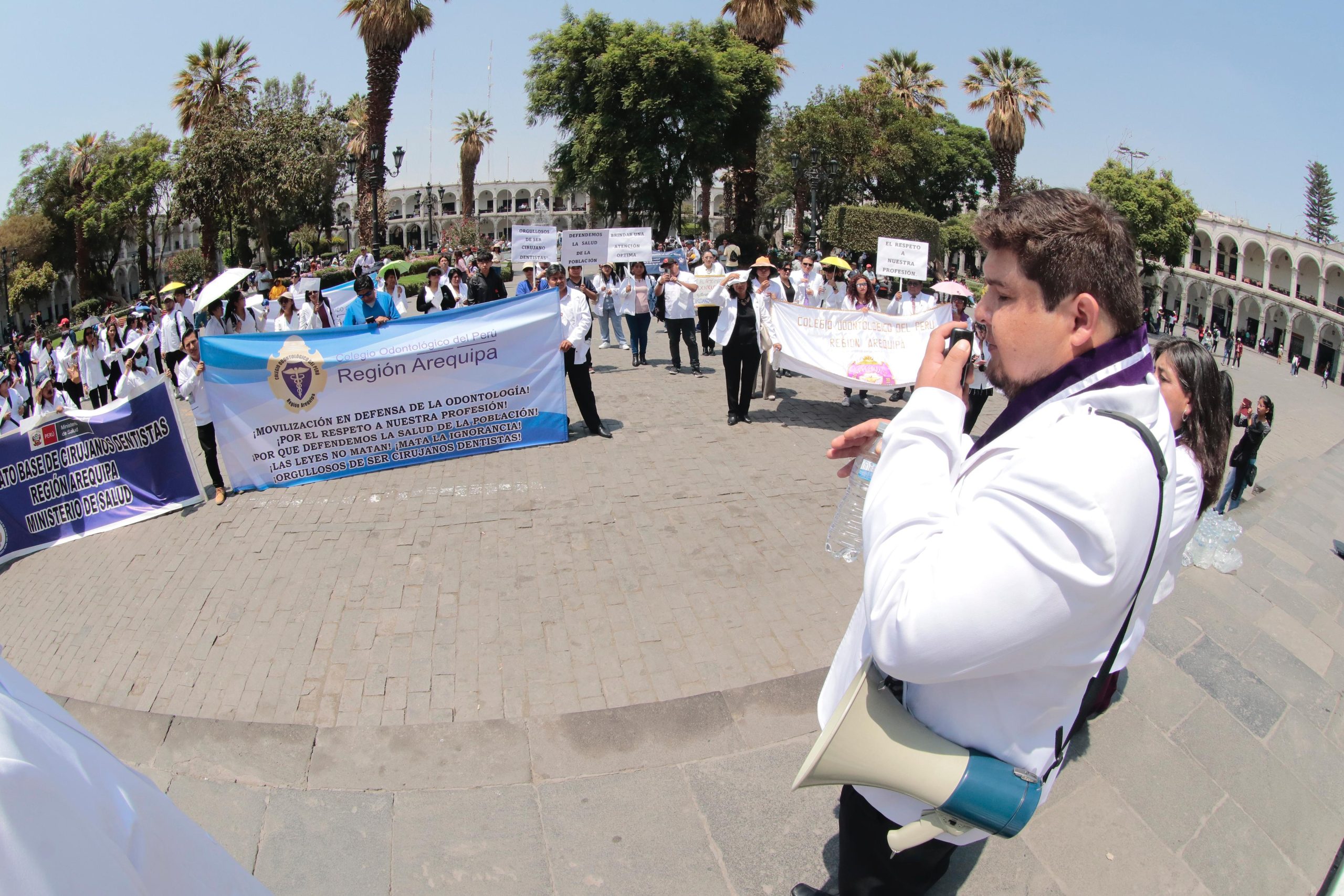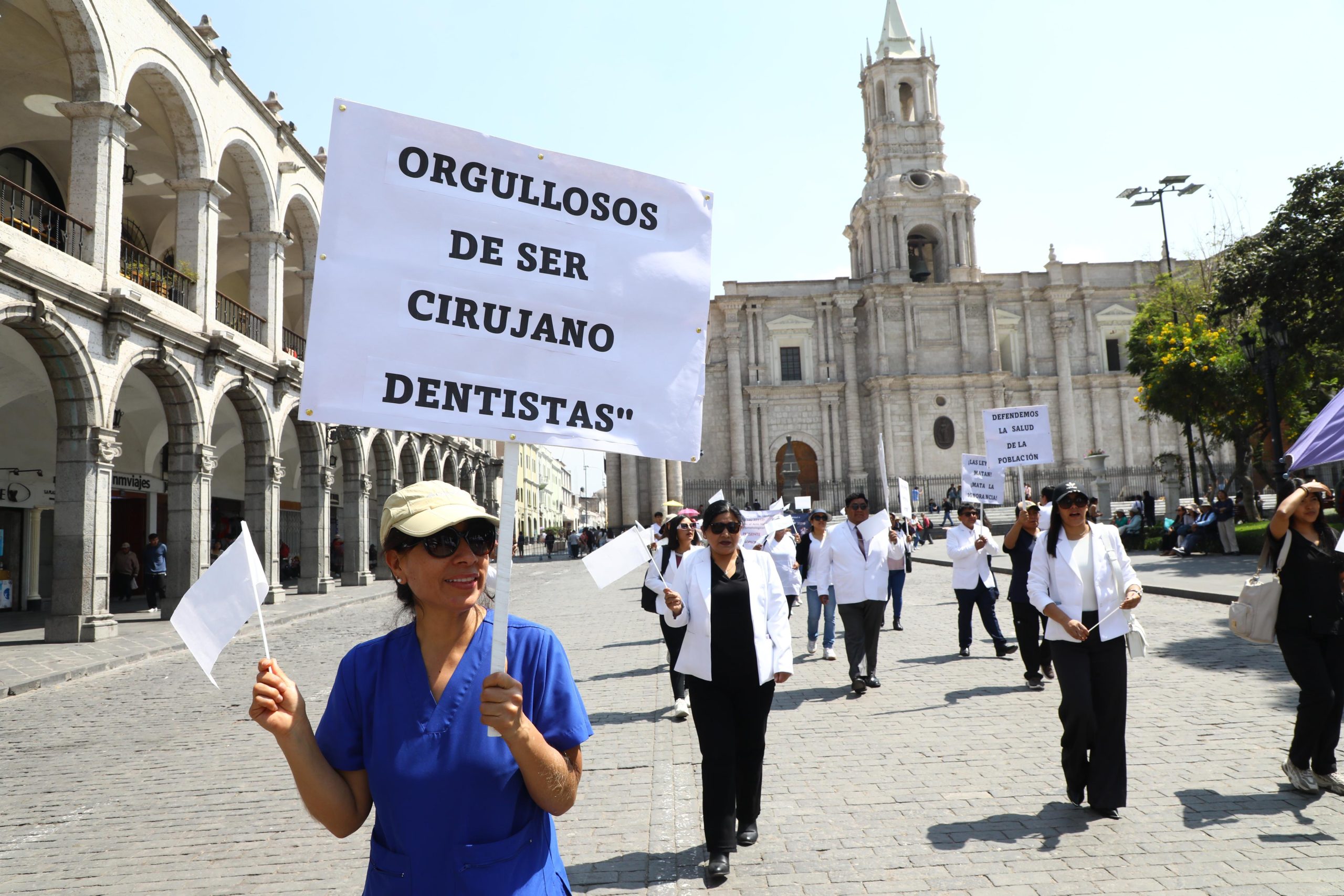 Por ello, se desarrolló una marcha en la Plaza de Armas, donde los cirujanos dentistas defienden su derecho a realizar procedimientos especializados. Asistieron profesionales de diversos sectores, como Minsa, EsSalud, de la Asociación de Odontólogos Privados de Arequipa (AOPRA) y otros.