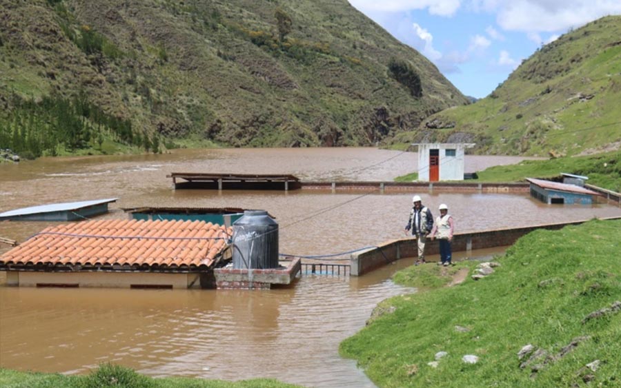 Más de diez viviendas, campos de cultivo, un estadio de fútbol y un complejo de baños termales en el distrito de Yanahuanca, en la provincia de Daniel Alcides Carrión, departamento de Pasco, resultaron inundados debido a las intensas lluvias que se registran en la sierra peruana.