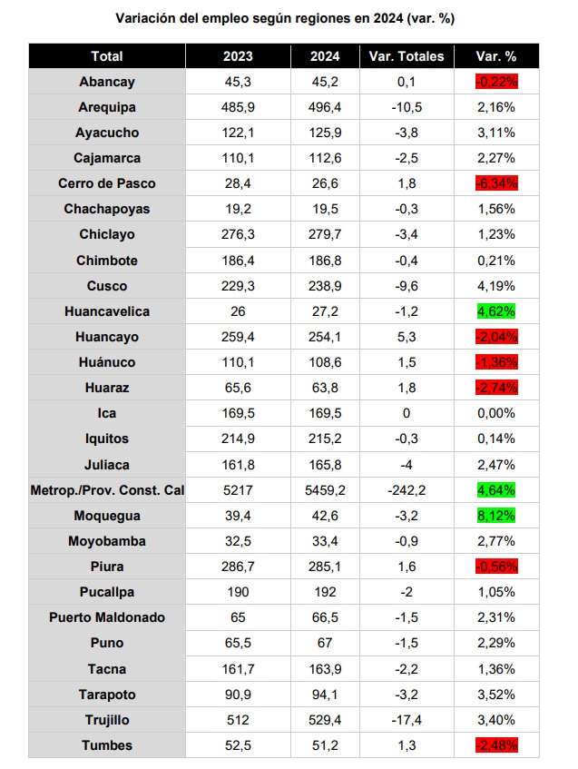 Según datos oficiales, en 2024 Arequipa mostró un crecimiento de 2.16% en la Población Económicamente Activa (PEA) ocupada, lo que implica la recuperación de aproximadamente 10 500 puestos de trabajo en comparación con el año anterior.