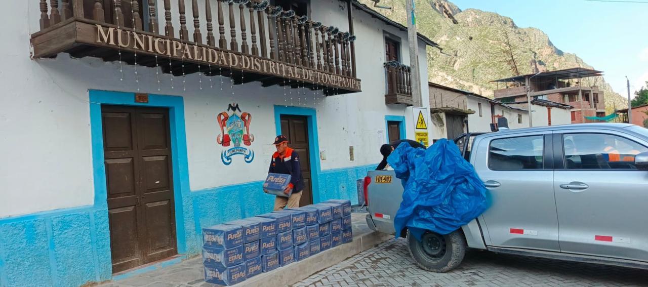 Los bienes fueron recibidos por el alcalde distrital de Tomepampa, Marco Oblitas Palomino, quien se encargará de su distribución a las familias afectadas.