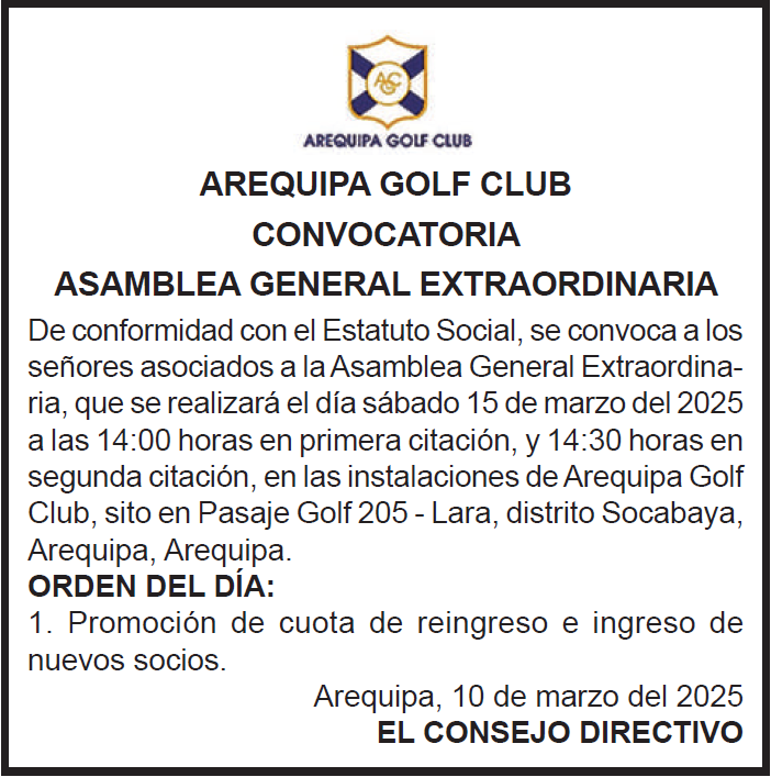 CONVOCATORIA GOLF ASAMBLEA EXTRAORDINARIA 10 de marzo de 202510 de marzo de 2025 CONVOCATORIAS Sin categoría Post Views: 38