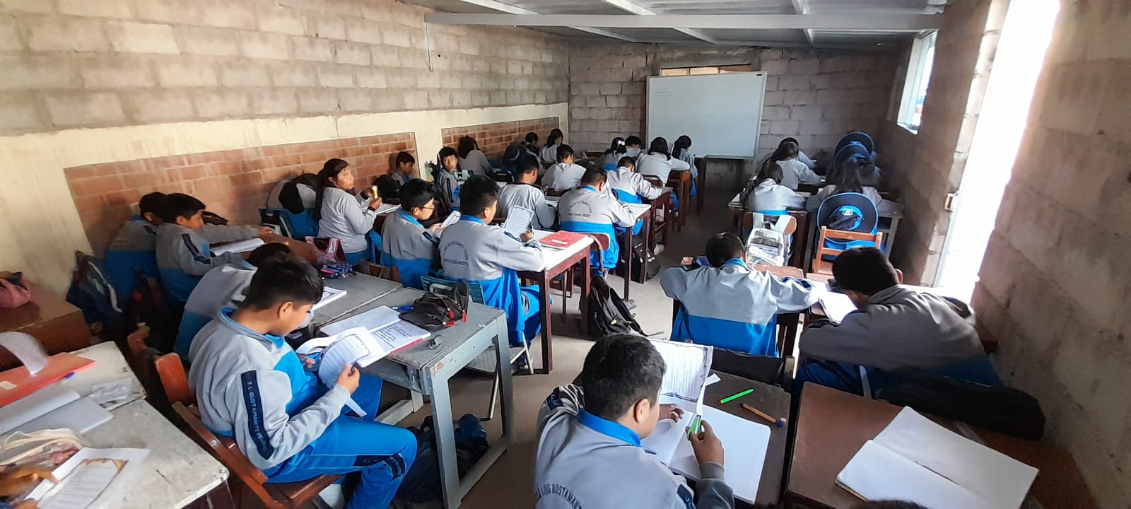 Días atrás, casi 40 estudiantes del 3º de secundaria del colegio José Luis Bustamante y Rivero, ubicado en el distrito de Cerro Colorado, Arequipa, se vieron obligados a estudiar al aire libre, soportando las altas temperaturas, fuertes vientos y polvo. Su aula fue utilizada como almacén para los productos del programa Wasi Mikuna, dejando a los estudiantes sin espacio adecuado para recibir clases.