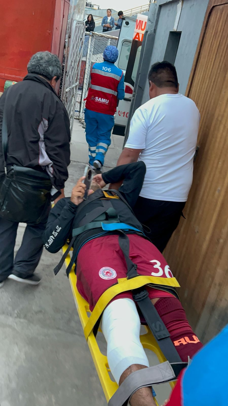 El futbolista se quejaba del dolor. Los médicos de su club lo asistieron, pero necesitaba ser trasladado a un hospital. Directivos de la Liga del Cercado llamaron a una ambulancia que llegó cerca de media hora después de que el compromiso terminó. Esto refleja la desorganización y falta de cumplimiento a los reglamentos establecidos por la FPF. A vista y paciencia de los que dirigen el fútbol en la ciudad ayer rondó la tragedia en Arequipa.