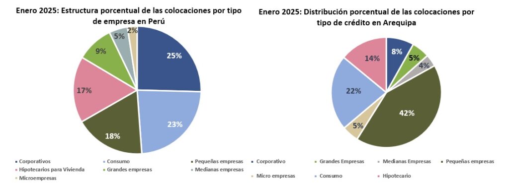 En Arequipa, el crédito corporativo ocupó una participación menor, con un 8 % (equivalente a 1 184 millones de soles), en comparación con el 25 % a nivel nacional.