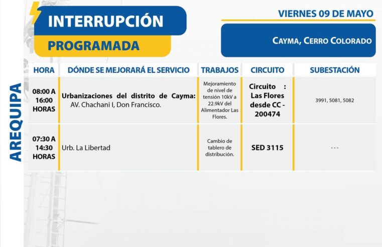 Leer másEstos son los distritos que no tendrán luz este viernes 9