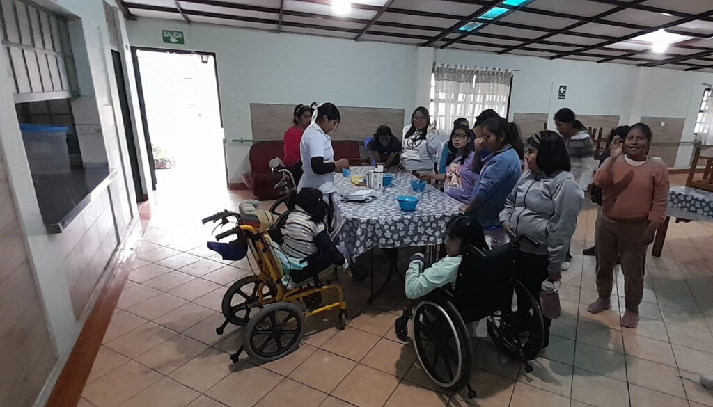 El hogar no solo brinda afecto: también garantiza una atención especializada. Dispone de un centro educativo básico especial (CEBE), un centro de rehabilitación física con hidroterapia, fisioterapia y atención médica permanente. Las hermanas trabajan junto a un equipo multidisciplinario de 24 personas entre médicos, enfermeras, terapeutas, docentes y personal auxiliar.