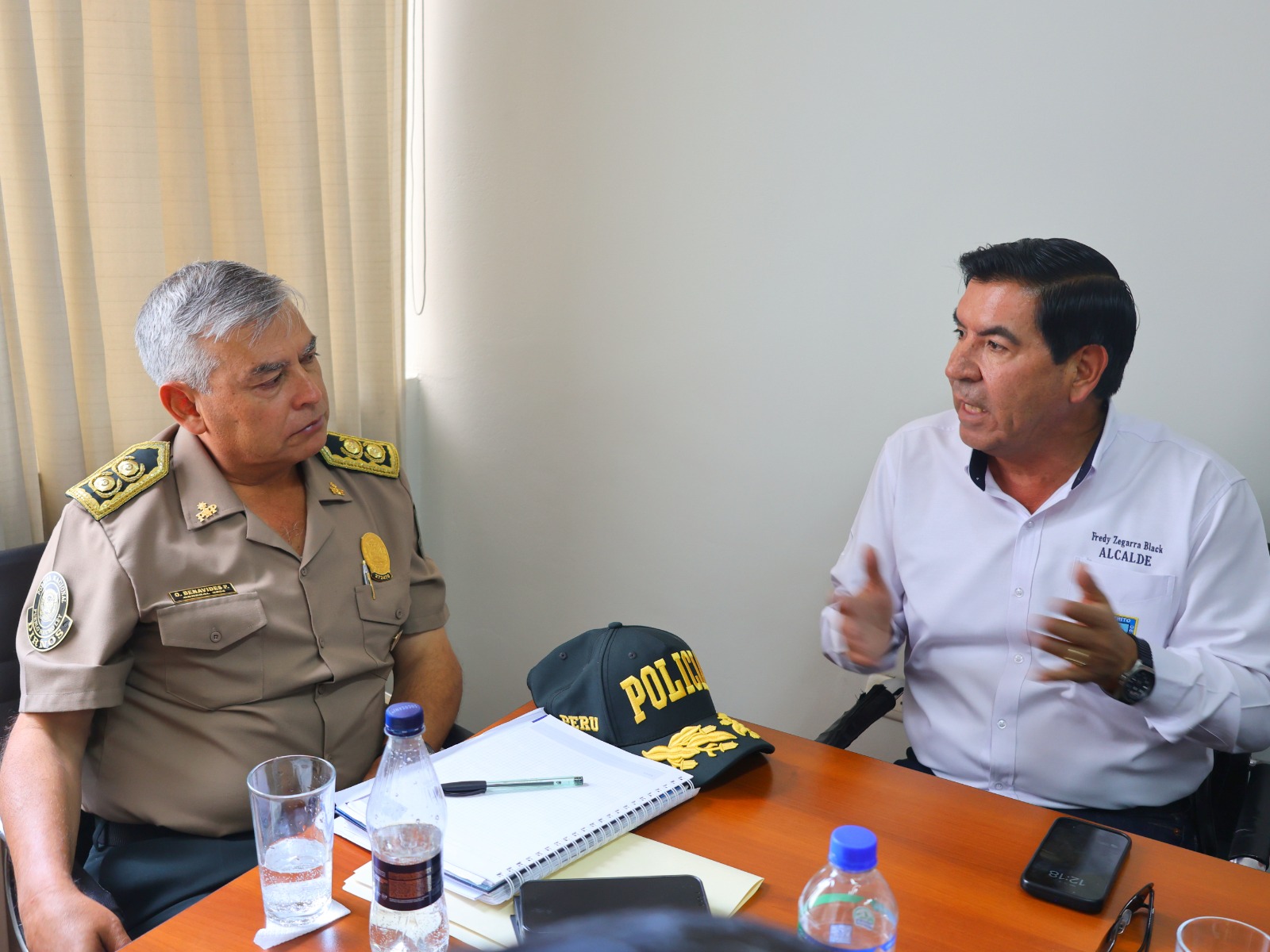 General Olger Benavides se reúne con alcalde Fredy Zegarra.