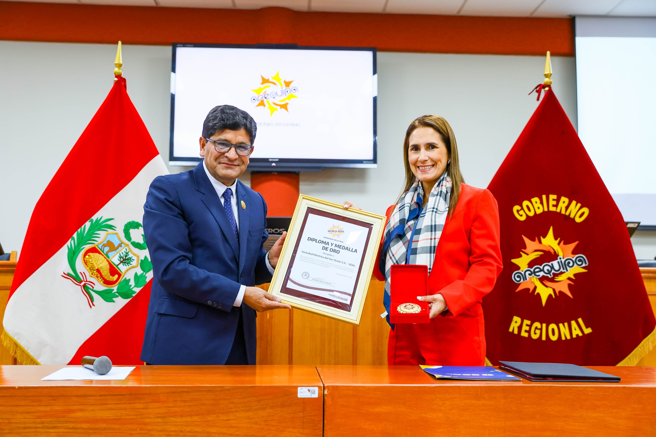 En conmemoración de sus 120 años de servicio continuo al desarrollo regional, la Sociedad Eléctrica del Sur Oeste S.A. – SEAL fue distinguida con la Medalla de Oro y el Diploma de Honor, la más alta condecoración otorgada por el Gobierno Regional de Arequipa. Este homenaje reconoce no solo su sólida trayectoria institucional, sino también su contribución a la modernización del sistema eléctrico y su impulso a prácticas energéticas sostenibles.