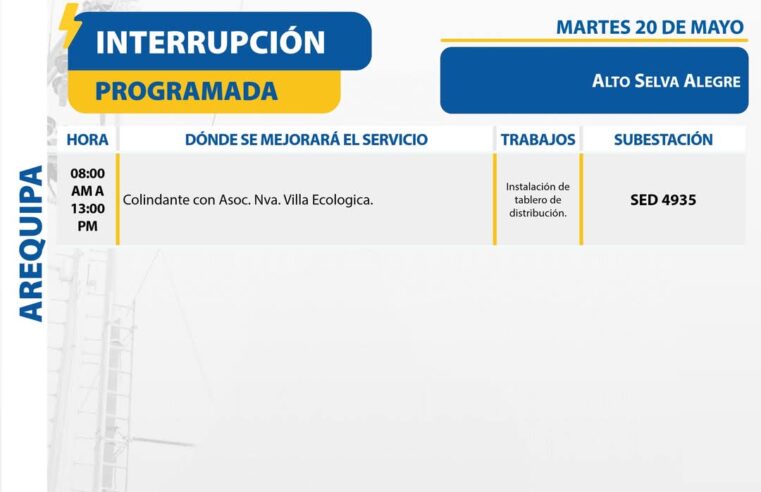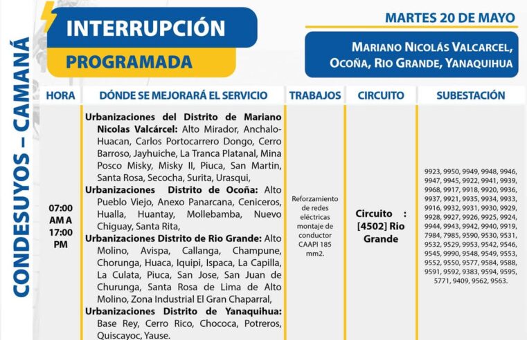Conoce los distritos afectados por cortes de luz programados en la región este martes 20