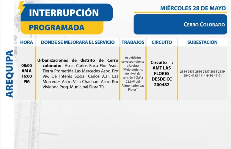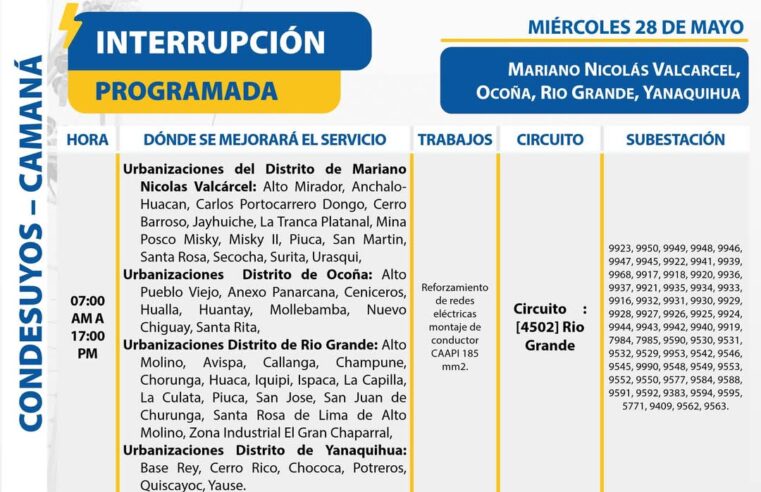 Leer másConoce los distritos afectados por cortes de luz programados en la región este miércoles 28 de mayo