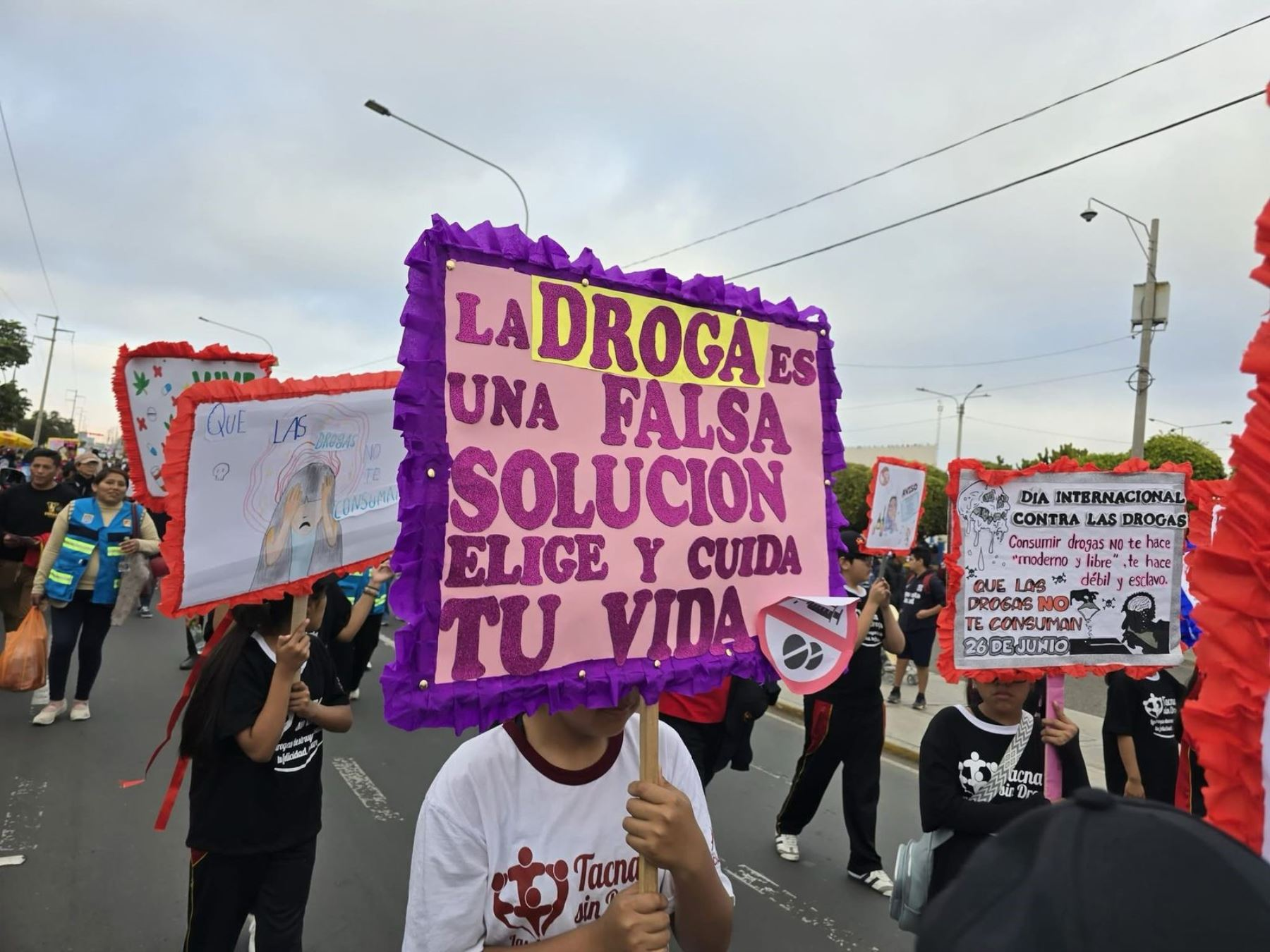 La tarde del 26 de junio, en el marco del Día internacional de la lucha contra el uso indebido y tráfico ilícito de drogas, escolares de la región participaron de una marcha motivacional y festival musical bajo el lema “Al ritmo de la vida, libres de drogas”.
