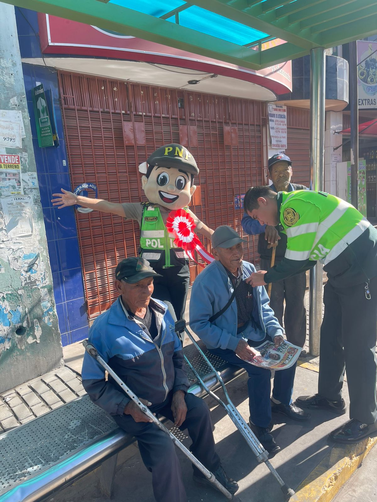 Con una escarapela del tamaño de su cabeza pegada en el pecho, un carismático policía de la Comisaría PNP Independencia salió a las calles para contagiar el espíritu patrio. La peculiar imagen arrancó sonrisas entre los comerciantes y transeúntes.