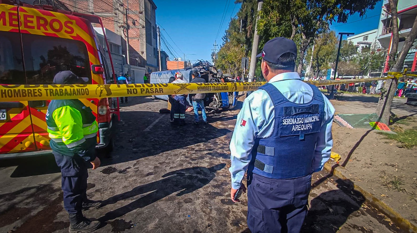 Accidente dejó varios heridos. Un fatal accidente de tránsito ocurrido ayer en la avenida Perú, a escasos metros del óvalo La Apacheta en Arequipa, dejó como saldo una persona fallecida y al menos 17 heridos. El hecho involucró a dos buses de transporte público, uno de los cuales operaba sin autorización.