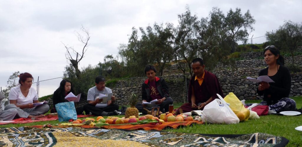 El budismo tibetano, que forma parte de la tradición Mahayana, floreció en la región del Himalaya y combina elementos de la lógica, el debate, la meditación profunda, el yoga y una visión compasiva del mundo. Paula comenzó su camino en el año 2010 con un grupo dirigido por practicantes españoles. “Teníamos un local en el centro donde nos reuníamos semanalmente. Durante ese tiempo también hemos recibido visitas de diversos maestros”. Antes de la pandemia, por ejemplo, llegó el tibetólogo Elio Guarisco, traductor de textos fundamentales, cuya presencia fue muy importante para la comunidad budista arequipeña.