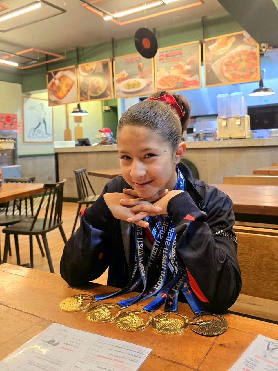 Su hermanita Isabella también forma parte de la selección de gimnasia artística del Club Internacional. Ambas cuentan con el apoyo incondicional de sus padres, Susana y Walter, y de sus abuelitos, Giovanna y Henry.