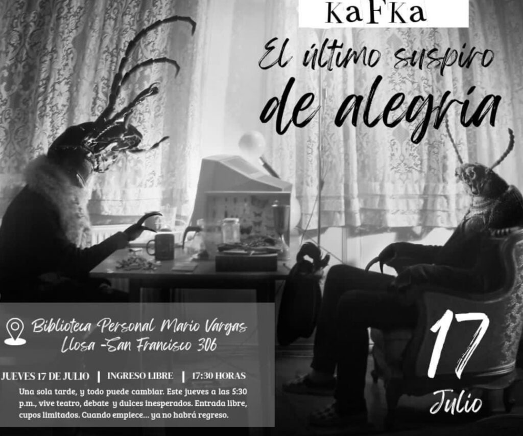 Ese mismo día, a las 5:30 p. m., la Biblioteca Personal Mario Vargas Llosa (San Francisco 306) será sede de la intervención escénica “Kafka: El último suspiro de alegría”. Esta propuesta incluye teatro en vivo, debate, diálogo con el público y algunas sorpresas dulces. La entrada es libre, pero los cupos son limitados, por lo que se recomienda llegar con anticipación.