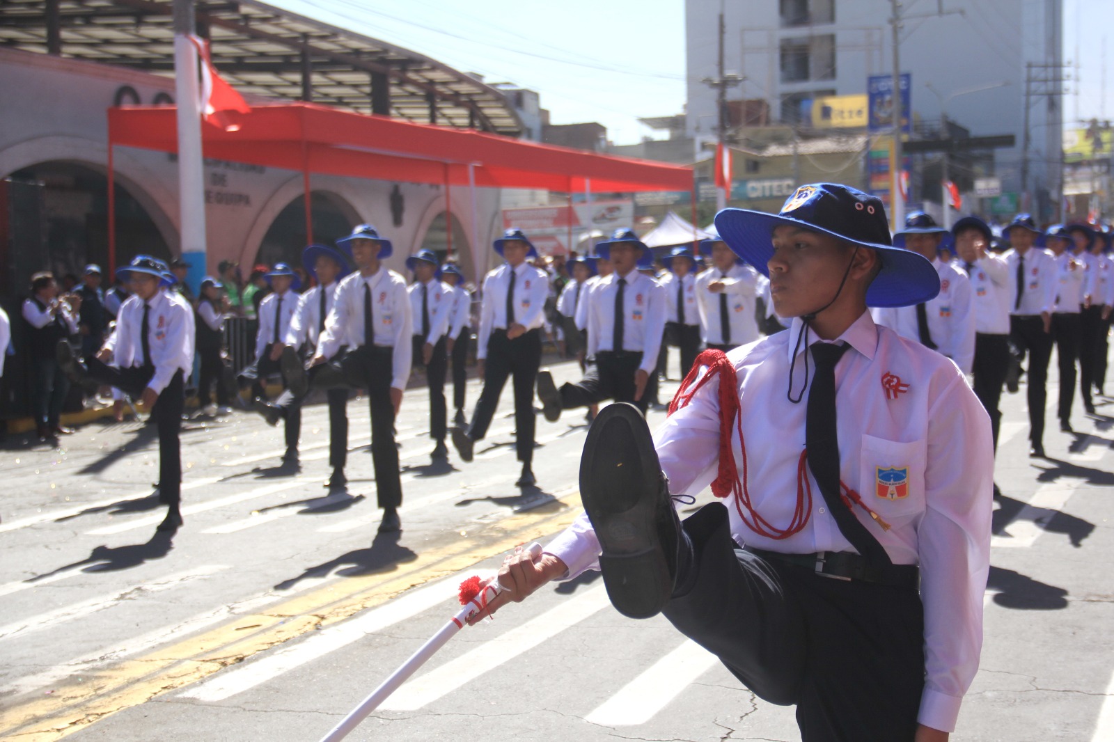 La avenida Independencia fue nuevamente “testigo muda” del paso gallardo de niños y jóvenes escolares, quienes demostraron disciplina, orden y, sobre todo, amor a la patria, participando en el desfile a pesar del intenso calor, bajo la mirada de miles de pobladores que se dieron cita por el CCIV aniversario de nuestra independencia nacional.