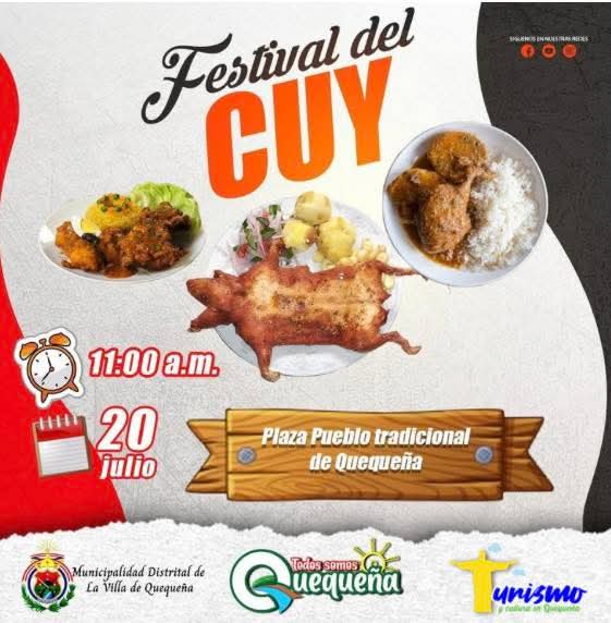 Al mismo tiempo, el Festival del Cuy reunirá diversas propuestas culinarias en torno a este emblemático insumo, desde el clásico cuy frito hasta versiones más innovadoras. Una jornada ideal para compartir en familia, apoyar a los emprendedores locales y celebrar el sabor auténtico de Quequeña.