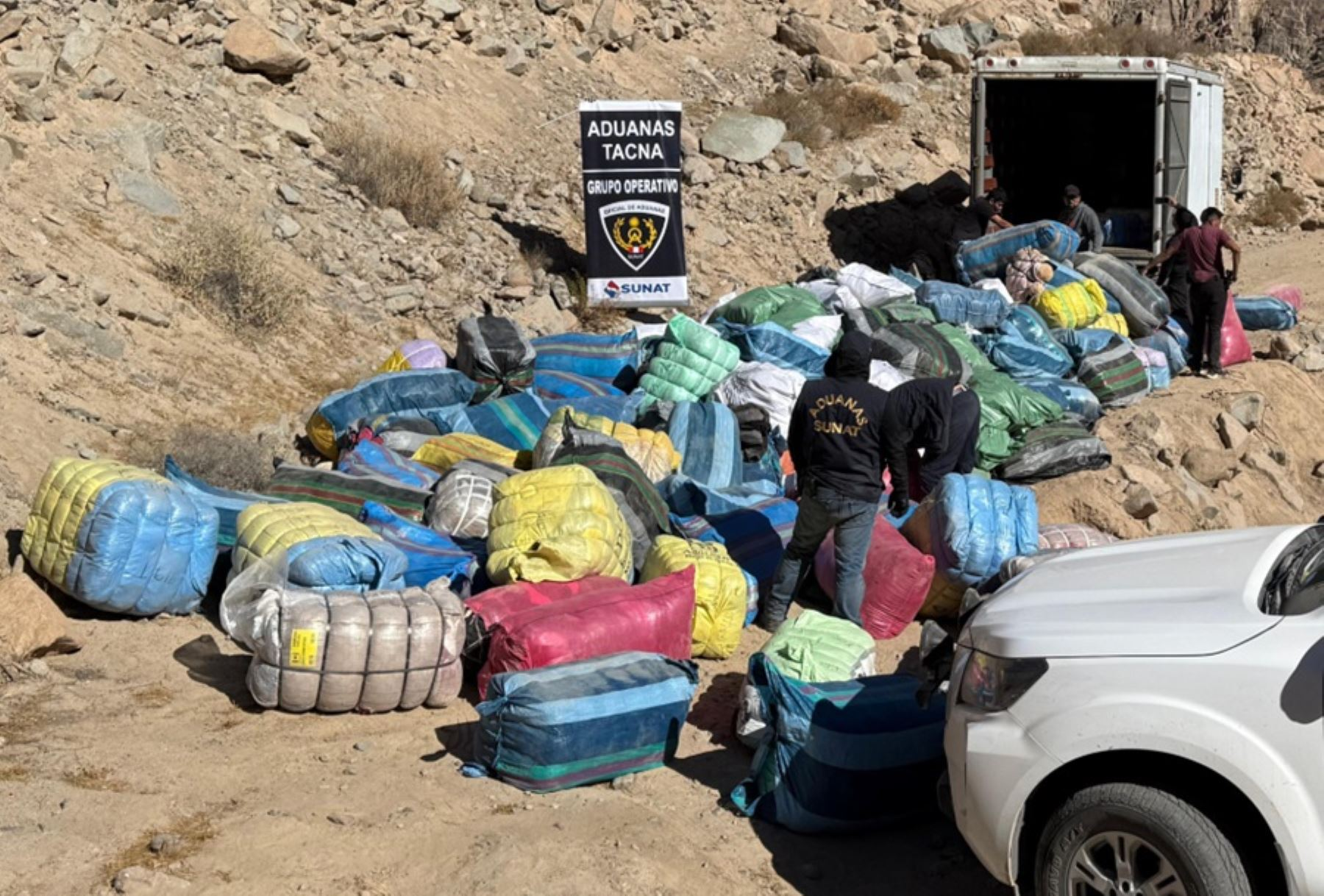 La Superintendencia Nacional de Aduanas y de Administración Tributaria (Sunat) incautó más de 8 toneladas de ropa, calzado y juguetes usados en Tacna, que habría ingresado al país de contrabando, por un valor aproximado de 428 mil soles.