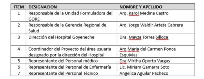 Según la directora, a ella se le solicitó la confirmación de un “comité técnico para la socialización del programa médico-arquitectónico y requisitos funcionales del proyecto”, es decir, para que el nuevo Goyeneche se proyecte y ejecute de forma efectiva y funcional. “¿Qué mejor que los jefes de los diferentes servicios de salud del nosocomio para explicar su propia realidad?”, realzó. Sin embargo, lamentablemente no los han dejado ingresar.