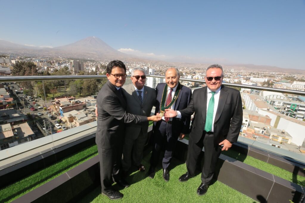 El rector de la UCSM, Jorge Luis Cáceres Arce, destacó que este homenaje representa mucho más que un reconocimiento individual. “Esta cátedra y este nombramiento son un pacto con el futuro, una alianza para que la universidad y la empresa trabajen juntas en el desarrollo de nuestro país. Los hermanos no compiten, sueñan juntos, y hoy sellamos ese sueño”, afirmó.