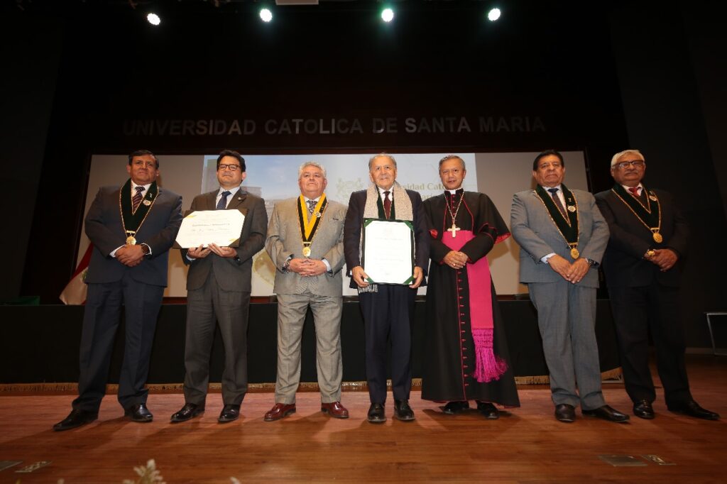 La Universidad Católica de Santa María rinde homenaje al fundador del Grupo Gloria con la instauración de una cátedra que lleva su nombre y su incorporación como profesor honorario, en un reconocimiento que trasciende el ámbito académico para proyectarse al desarrollo industrial, social y económico del Perú.