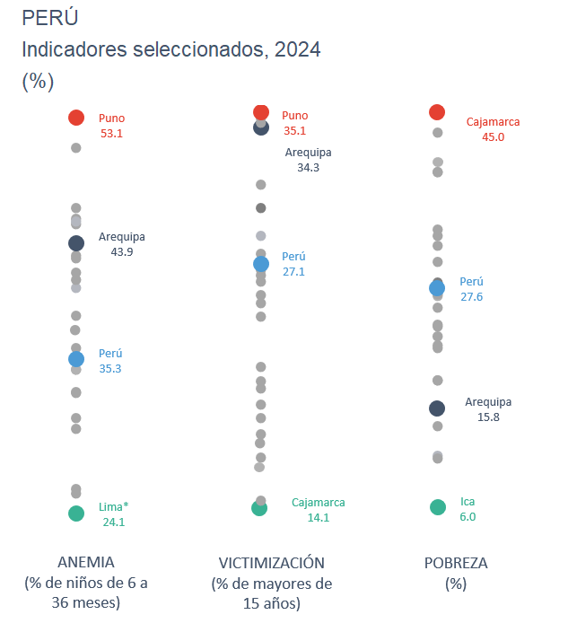 Voceros de IPE, indicaron que a pesar de los avances mostrados, los desafíos institucionales y sociales se han intensificado. Entre 2023 y 2024, la pobreza en Arequipa aumentó de 13.9 % a 15.8 %, lo que significó que 29 mil personas cayeron en situación de pobreza. Asimismo, según el Índice de Competitividad Regional, la región muestra deficiencias en Salud e Instituciones. La anemia infantil alcanzó al 43.9 % de los niños entre 6 y 36 meses, la segunda cifra más alta en los últimos ocho años y por encima del promedio nacional (35.3 %).