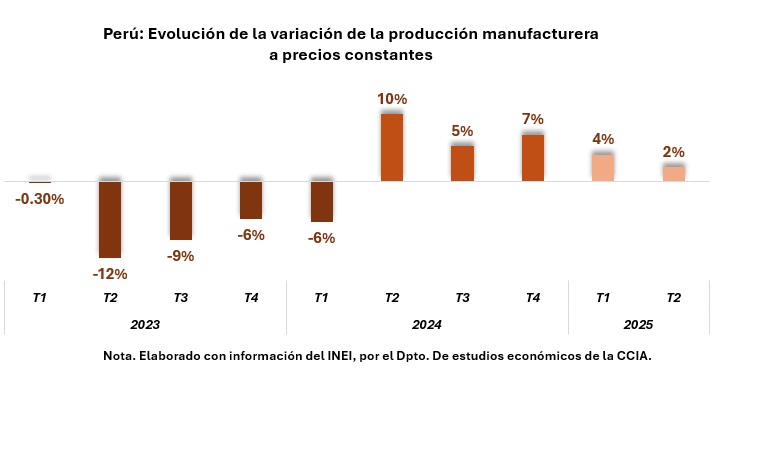 A finales de 2024, la producción manufacturera peruana retomó un comportamiento favorable, consolidando su recuperación tras los retrocesos registrados el año anterior.