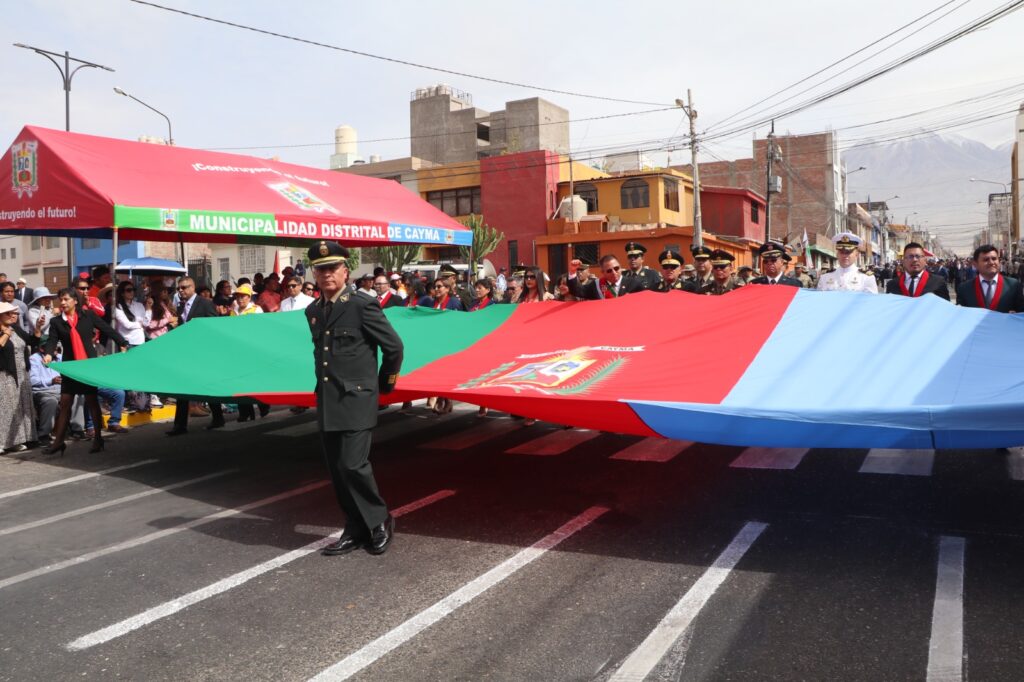 Una demostración de gallardía y disciplina mostraron los alumnos de las instituciones educativas de Cayma que participaron del desfile por el ducentésimo segundo aniversario de creación política del distrito, acto desarrollado en la plaza de Francisco Bolognesi.