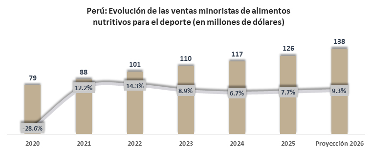 De cara a 2026, se proyecta un incremento de 9.3 %, con ventas estimadas en 138 millones de dólares. Este impulso se vincula con la diversificación de la oferta, incluyendo productos de origen vegetal, opciones listas para consumir y fórmulas enriquecidas, así como con la expansión de los canales de distribución digitales y minoristas, que permiten un acceso más amplio y conveniente. A su vez, la incorporación de segmentos jóvenes con mayor conciencia sobre nutrición deportiva y el crecimiento de consumidores en ciudades intermedias sostienen las perspectivas positivas del mercado, que continúa ampliando su alcance y consolidando su posición dentro del consumo cotidiano.