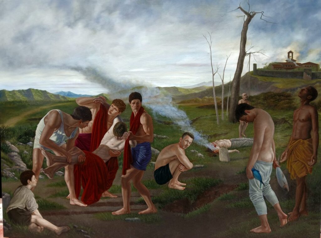 La exposición que tiene la influencia de la pintura neoclásica y la pintura posmoderna de los ochenta y los noventa despierta en el público emociones diversas y profundos sentimientos