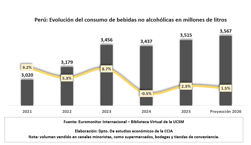 El consumo de bebidas no alcohólicas en el Perú alcanzó 3,515 millones de litros