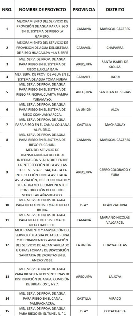 Hay que precisar que la ejecución de las 15 obras priorizadas está estimada bajo la modalidad de Obras por Impuestos, la cual permite a las empresas privadas financiar y ejecutar proyectos de inversión pública a cuenta del pago de sus impuestos.